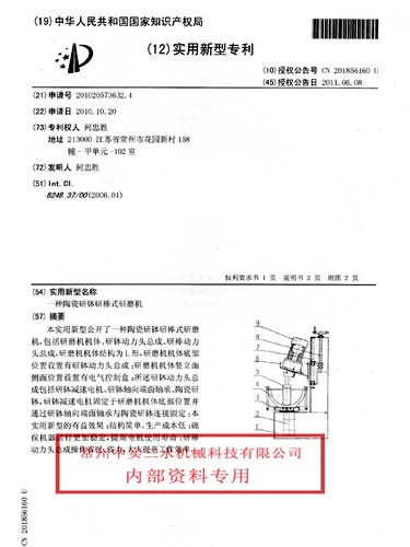 常州中實三水科技陶瓷研缽研磨機(專利號:ZL201020573632.4)